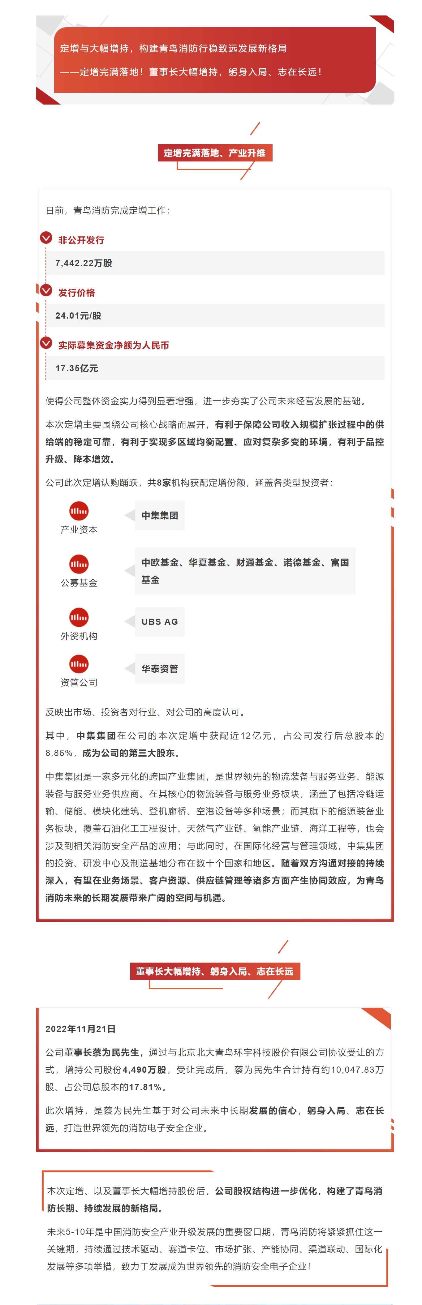 定增与大幅增持,构建青鸟消防行稳致远发展新格局——定增完满落地!董事长大幅增持,躬身入局、志在长远!